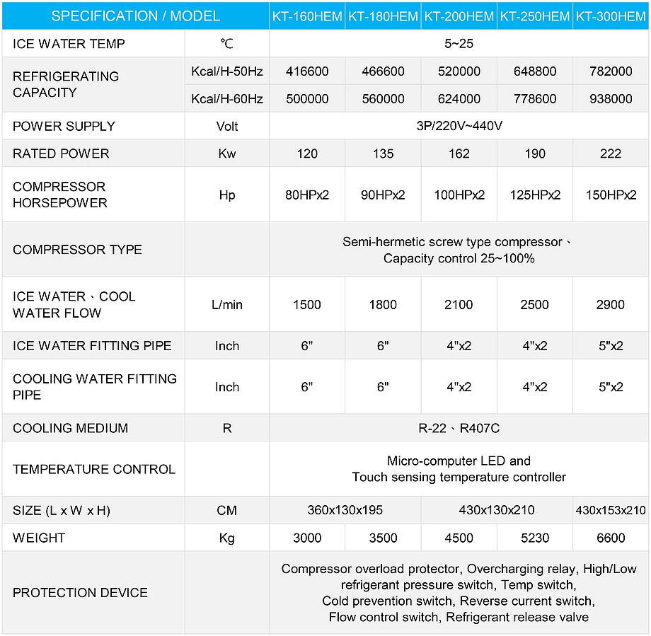 KT160HEM / KT180HEM / KT200HEM / KT250HEM / KT300HEM
