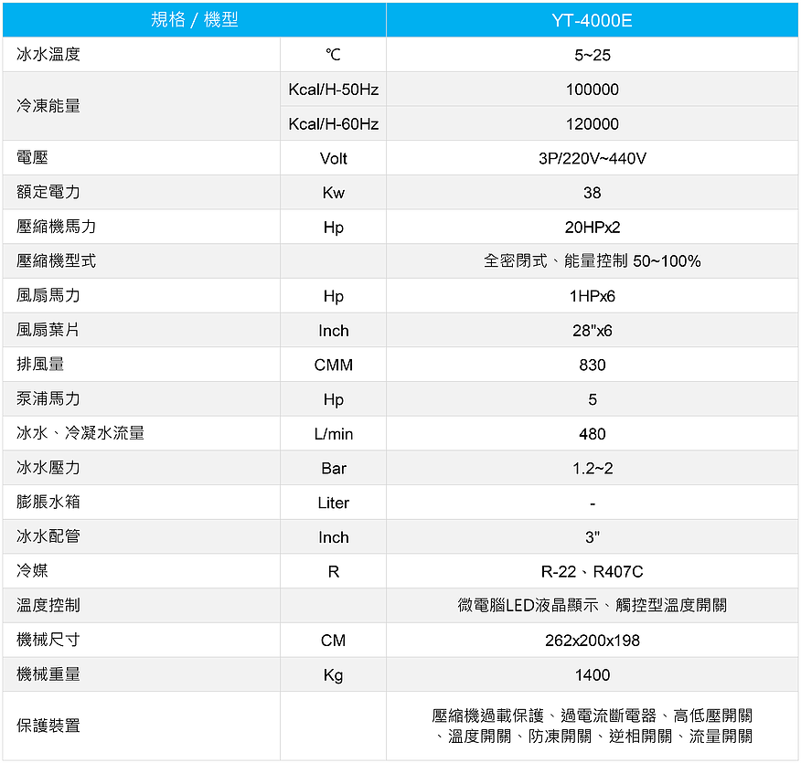 ● 嶄新的設(shè)計(jì)理念及能源效率、最佳性能於一機(jī)的全新風(fēng)冷式冰水機(jī)。本機(jī)保養(yǎng)容易,安裝容易。不需散熱水塔、低噪音、無污染、環(huán)保機(jī)型。
